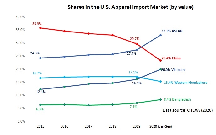 “Hugo Boss’s sourcing strategies are relatively different from fashion brands and retailers in the US. Hugo Boss’s self-owned production facilities are all located in Europe, and they follow the general trend of Eastern Europe being responsible for mass production items and Western Europe being responsible for more of the fine craftsmanship/made-to-measure items. Hugo Boss’s production distribution, which is 53% in Europe, 40% occurs in Asia, 6% in Africa, and 1% in the Americas, is much more diverse than the production distribution of the United States’ T&A industry, which heavily relies on Asian suppliers. It is indicative of a strong regional supply chain in Europe, and because the regional supply chain in the Americas is not as strong due to complicated trade agreements and lack of production capacity, many fashion brands and retailers heavily depend on overseas production from Asian countries. “