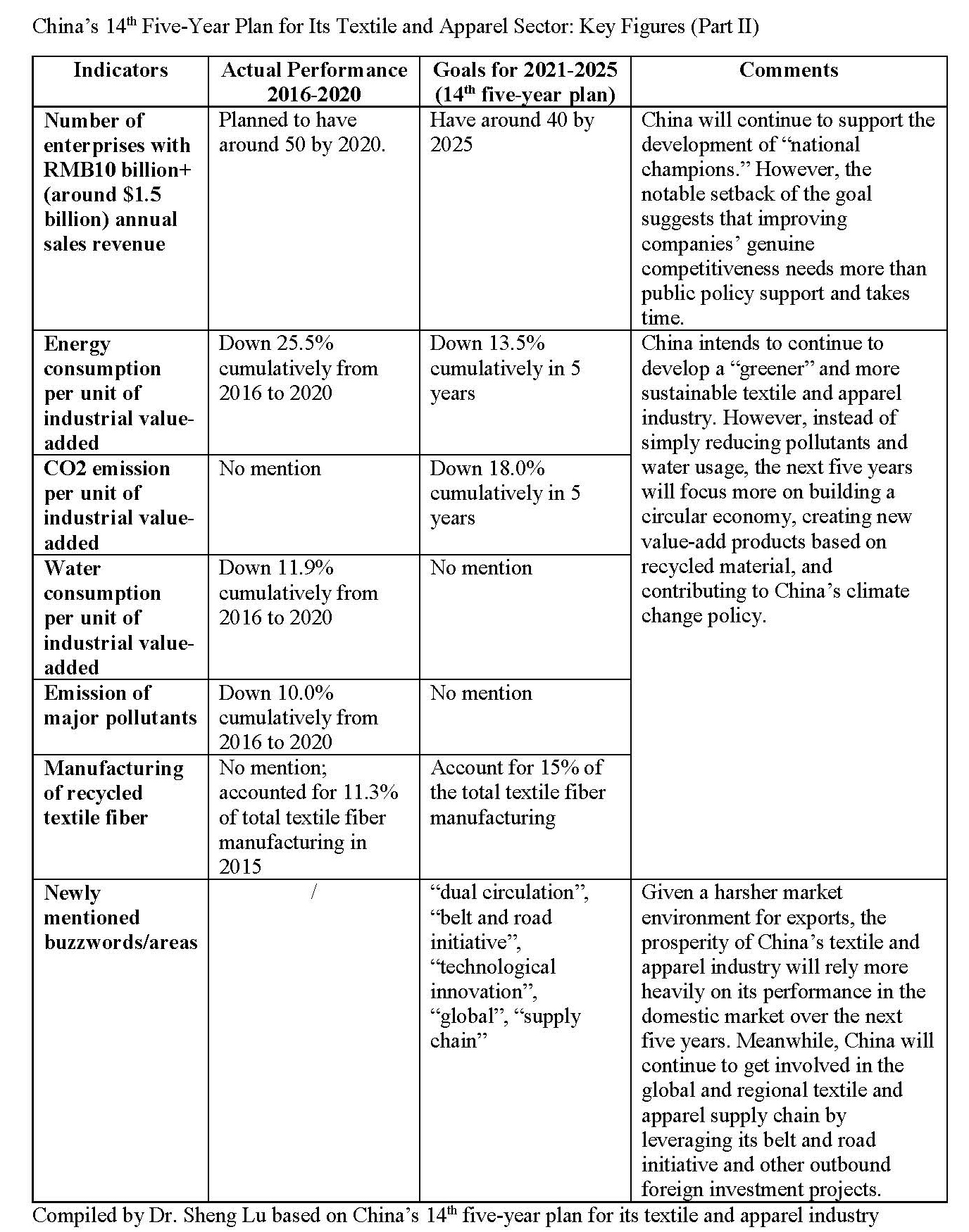 Further reading: Lu,Sheng (2021). The plan for China textiles and apparel over the next 5 years. Just-Style.