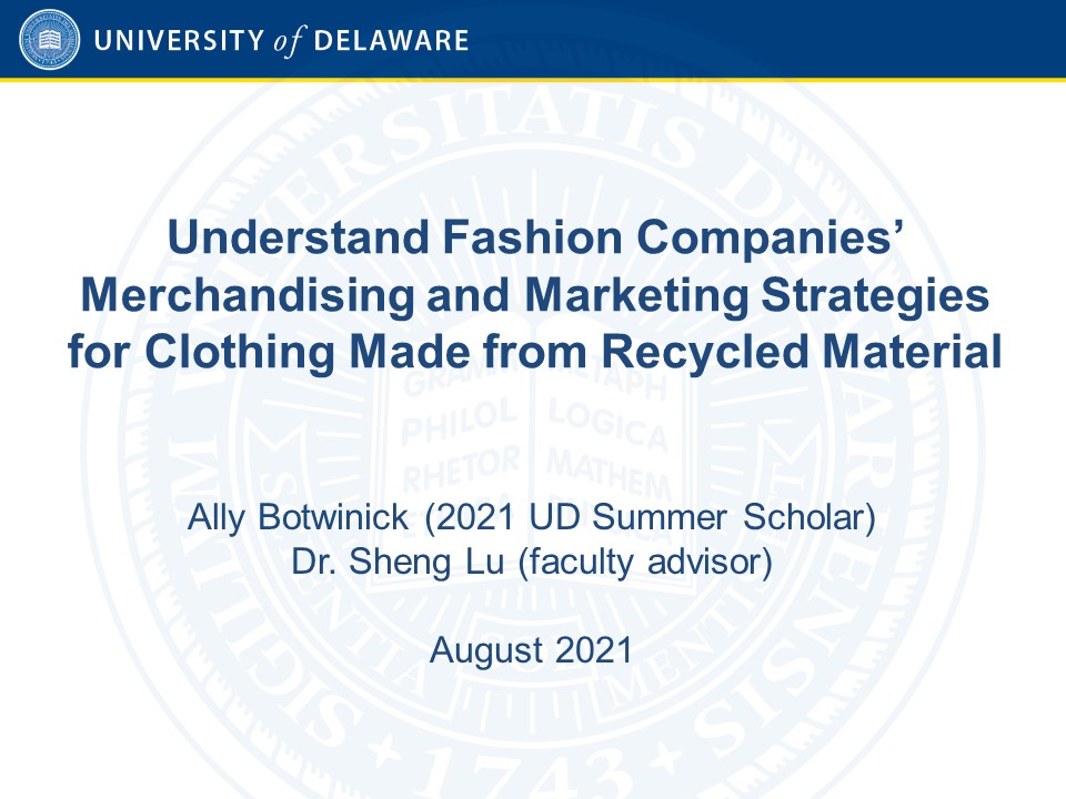 Ally Botwinick 2021 UD Summer Scholar project: Understand Fashion Companies’ Merchandising and Marketing Strategies for Clothing Made from Recycled Materials