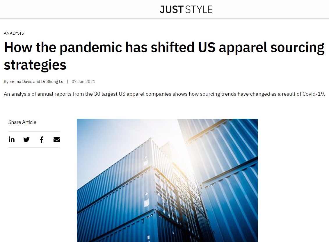 Emma Davis Independent Study research project (published in Just-Style): How the pandemic has shifted US apparel sourcing strategies