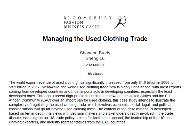 Shannon Brady‘s summer scholar and independent study: Managing the used clothing trade (published in the Bloomsbury Fashion Business Cases)