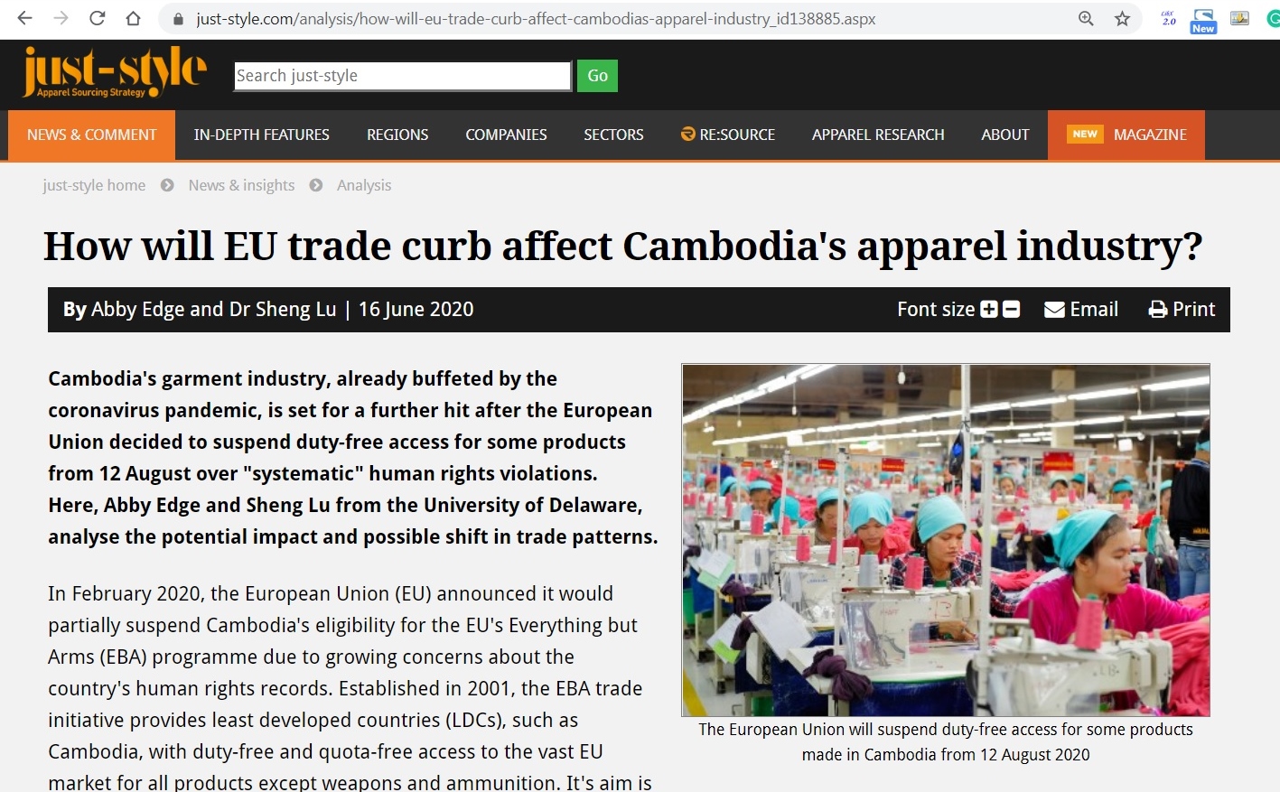 Abby Edge‘s independent study: How will EU Trade Curb Affect Cambodia’s Apparel Industry? (published in Just-Style).
