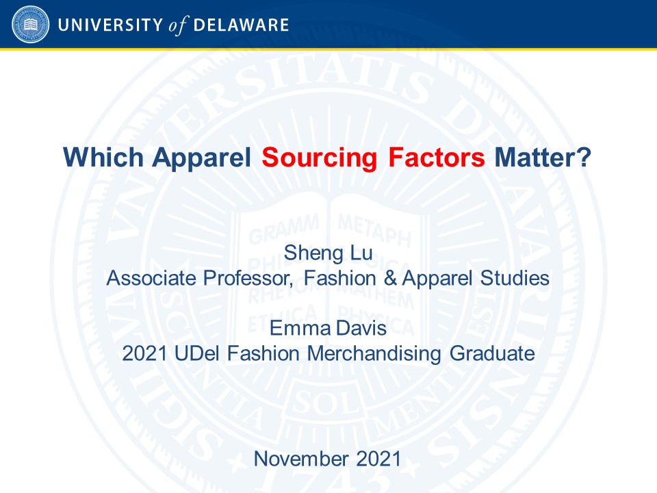 Short bio: Kendall Keough graduated from the University of Delaware (UD) with a Master of Science in Fashion and Apparel Studies (class of 2020). She also graduated from UD with a Bachelor’s Science in Fashion Merchandising with Honors in 2019. In 2018, Kendall won a YMA Fashion Scholarship Fund case study competition. Kendall has held many leadership positions at UD, including President of the Synergy Fashion Group. In the summer of 2020, Kendall was invited to present her research to the sourcing team at Under Armour and a seminar hosted by the United States International Trade Commission (USITC). Kendall currently works as an assistant inventory manager at Macy’s.
