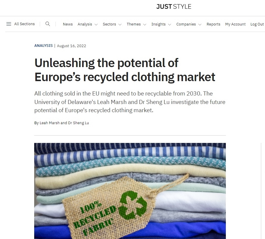 Leah Marsh summer scholar research project (published in Just-Style): Unleashing the potential of Europe’s recycled clothing market