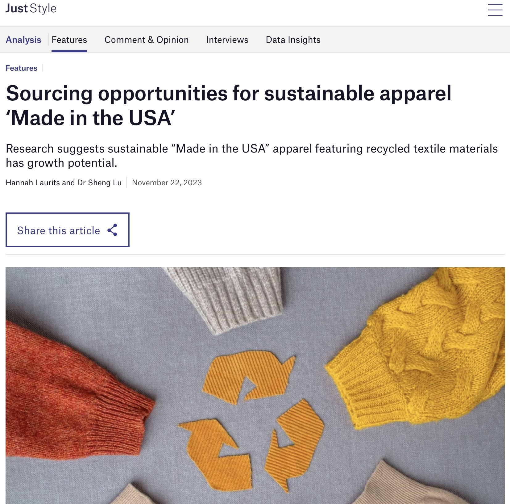 Supervised research conducted by Hannah Laurits: Sourcing opportunities for sustainable apparel “Made in the USA” (Published in Just-style)