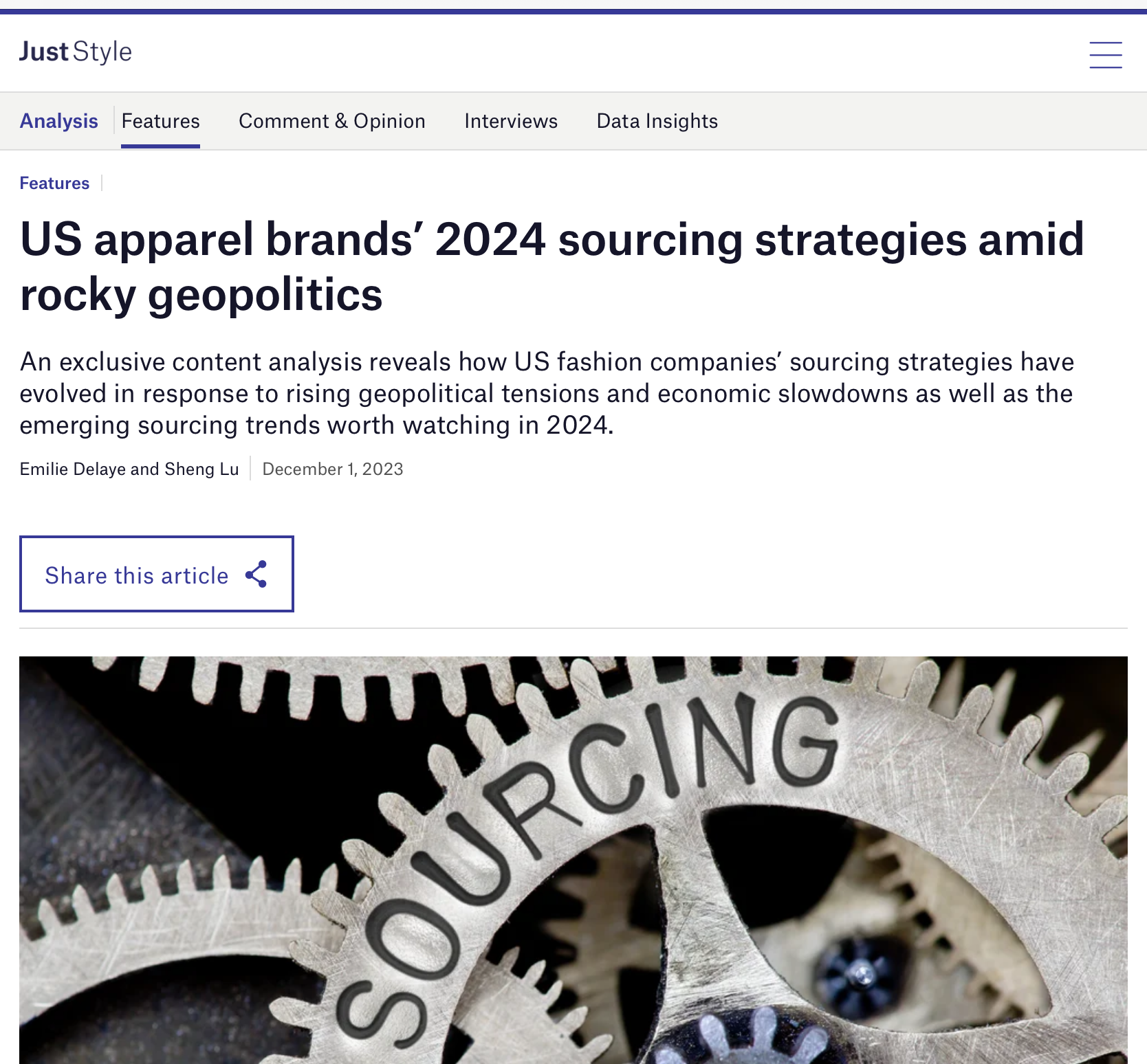 Supervised research conducted by Emilie Delaye: Exploring US Apparel Brands and Retailers’ Evolving Sourcing Strategies (Published in Just-style)