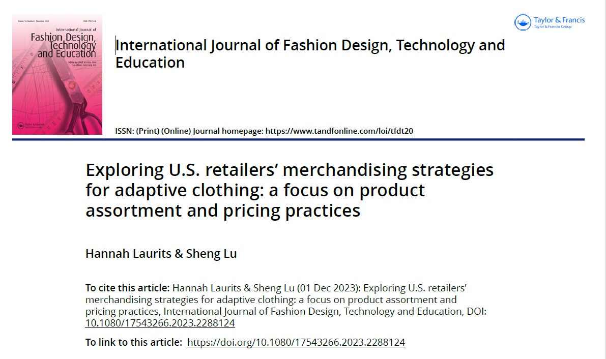 Hannah Laurits’s Master’s Thesis: Exploring U.S. Retailers’ Merchandising Strategies for Adaptive Clothing: A Focus on Product Assortment and Pricing Practices (published in the International Journal of Fashion Design, Technology and Education).