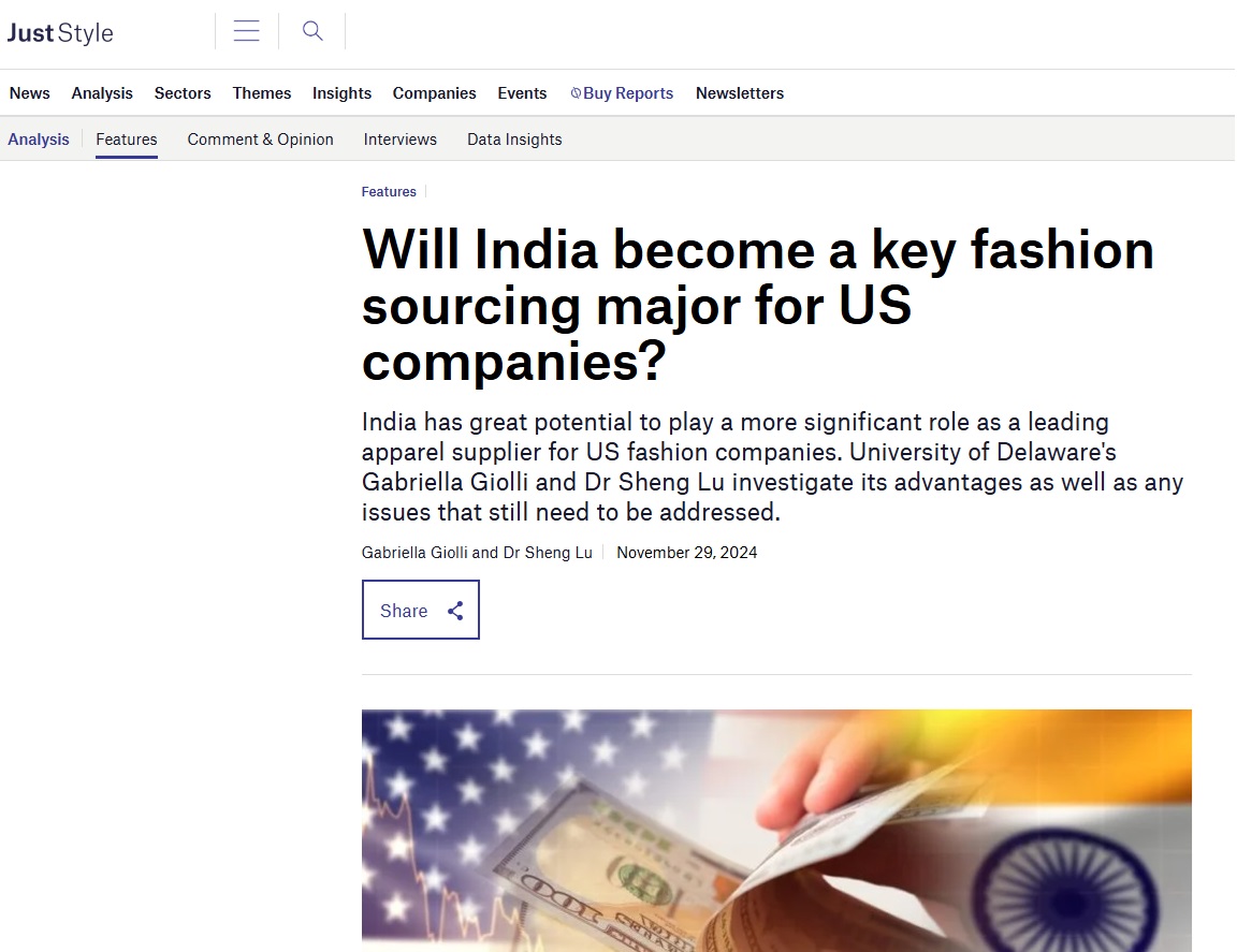 Supervised research conducted by Gabriella Giolli: Exploring India as an Apparel Sourcing Base for U.S. Fashion Companies (Published in Just-style).