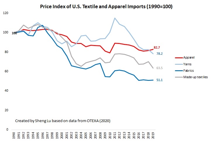 First, the volume of the world apparel trade will be hit hard by Covid-19. As clothing stores are forced to shut down and consumers are losing jobs and struggling financially, the demand for apparel consumption in the EU and US, the world’s top two apparel consumption markets, is expected to drop sharply. As shown in the figures below, every 1% decline in the US and EU Gross Domestic Product (GDP) in 2020 could lead to at least a 2-3% drop in the value of their apparel imports. Notably, during the 2008 financial crisis, the value of world apparel imports also decreased by as much as 11.5% when the EU and US GDP suffered a 2.5-3% negative growth.