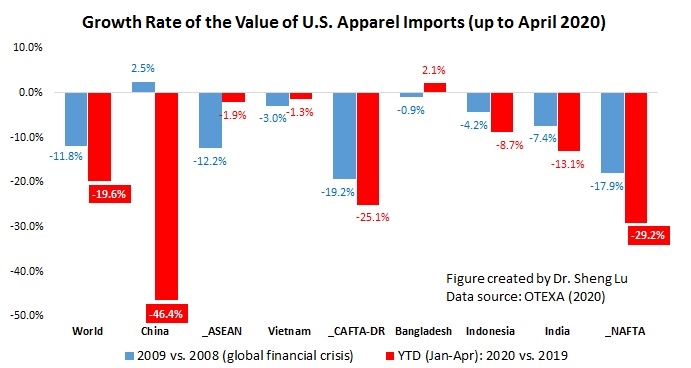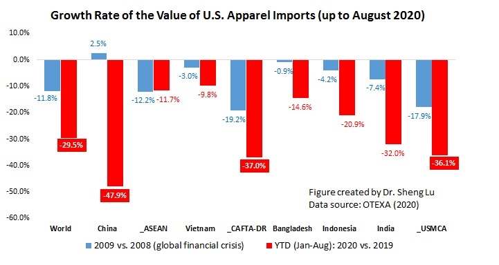 Like many other developed economies whose textile and apparel industries had reached the stage of post-maturity, the United States today is a net textile exporter and net apparel importer. COVID-19 has affected U.S. textile and apparel trade in several ways: