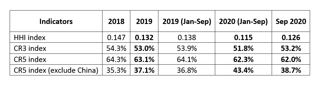 - Trade volume fell and yet fully recovered: Both affected by the shrinkage of import demand and supply chain disruptions, the value of U.S. textile and apparel imports dropped by as much as 19.3% in 2020 from a year ago, particularly apparel items (down 23.5%). Likewise, the value of U.S. textile and apparel exports in 2020 decreased by 15.6%, including an unprecedented 26% decrease in yarn exports. Further, thanks to consumers’ robust demand, the value of US apparel imports enjoyed a remarkable 27.4% growth in 2021 from a year ago and but was still 2.5% short of the level in 2019.