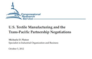 The Congressional Research Service just released its most recent study on the U.S. textile manufacturing industry and the Trans-Pacific Partnership (TPP) Negotiation. This is also one of the limited reference available so far that specifically addresses the sectoral impacts of TPP.