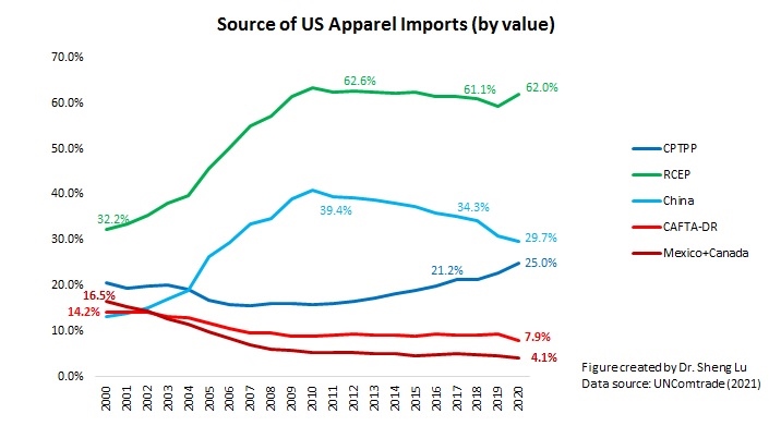 On the other hand, as the U.S. economy is turning more mature and sophisticated, the share of U.S. textile and apparel manufacturing in the U.S. Gross Domestic Product (GDP) dropped to only 0.12% in 2020 from 0.57% in 1998 (Bureau of Economic Analysis, 2021).